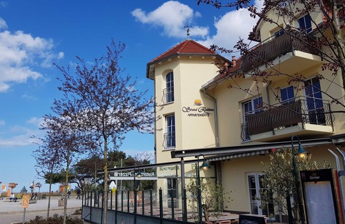The "Strandresidenz Karl Hagen" is only separated from the white sandy beach and the Baltic Sea by the dunes. It is located directly on the beach forecourt in the center of Karlshagen and at the entrance to the wide, white, sandy beach. The house was opened in July 2005. The apartments, mostly consisting of living room and bedroom, have the stylish character of the house appropriate equipment with high-quality furniture, comfortable beds, a state-of-the-art kitchenette and satellite TV with radio, DVD and CD. In addition, the house has Internet access via W-LAN for all guests (Telekom Hotspot). Due to the not yet sufficient bandwidth please use also the hotspot of the municipality Karlshagen! The majority of the apartments are equipped with a balcony and a fireplace and have a wonderful Baltic Sea view. In the basement is a bicycle storage room. Bicycles can be rented nearby. The final cleaning price includes the running costs (water, electricity, gas, heating), on request you can book bed linen and towels for 15 € / person / stay. Fresh rolls are available about 20 meters away at the bakery. This also offers complete breakfast sets from 3.75 € / person. In addition to the recreation offered by the beach and the apartments, there are extensive sports and leisure activities in the immediate vicinity. So you can undertake not only boat and fishing trips in the fish-rich Greifswalder Bodden and the Peenestrom but also charter tours around Usedom and the adjacent islands. For sports enthusiasts, wakeboarding and windsurfing are an interesting alternative to tennis, beach volleyball and horseback riding. Last but not least, an extensive range of art, culture and music completes the active and relaxing holiday. Information is available in our guest folders in the apartments for you.