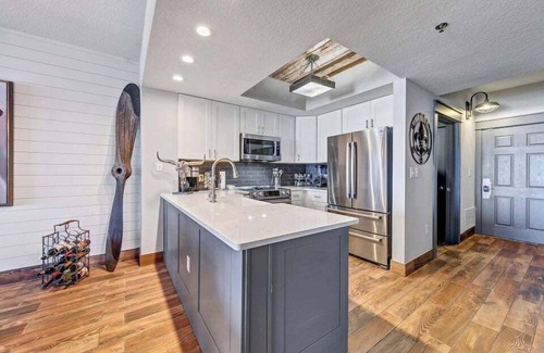 The completely remodeled kitchen is fully equipped with brand-new stainless-steel appliances, updated quartz countertops, farmhouse style sink and same designer style as the living and dining area. In addition, the kitchen has been fully equipped with all utensils, plates, and cookware for optimum convenience.