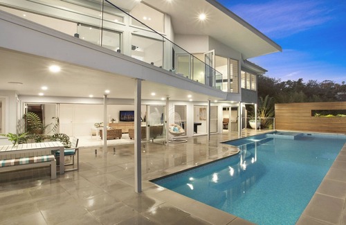 A unique offering - no expense has been spared with this stunning multi-million dollar designer house in North Avoca. Perfectly positioned to maximise the breath-taking ocean views from every corner, this light-filled, architecturally-designed masterpiece is complemented by a 13-metre tiled pool, spa and landscaped surrounds, and will delight and inspire on every level. Featuring multiple free-flowing indoor and outdoor living spaces, picturesque balconies, high ceilings, state of the art inclusions and floor-to-ceiling windows to showcase the ocean panorama, Azure is truly in a league of its own. Superbly appointed, this stunning home includes gated entry, alarm, mini basketball court, outdoor heated Balinese shower, pizza oven courtyard, Foxtel, games room, reverse cycle air conditioning and open log fire. Only a three minute walk to the sand at North Avoca via a private walkway, Azure is perfectly positioned to enjoy the best of everything; whether it's the peace and privacy of North Avoca, a short beach walk to Avoca shops and cafes or a two minute drive to Terrigal beach and esplanade. Master Bedroom contains a king bed, walk-in robe, ensuite, smart TV, and ocean views. Bedroom 2 contains a queen bed, built-ins, ocean views. Bedroom 3 contains a tri-bunk bed, built-ins, lounge and TV. Bedroom 4 contains a queen bed, built-ins and ocean views. Bedroom 5 contains a double bed, built-ins and ocean views.