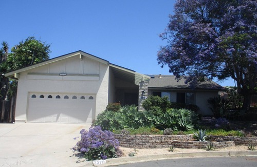 Enjoy our California ranch home located on a quiet cul-de-sac, in the Fire Mountain area of Oceanside. Our home has many spacious and inviting areas inside and outside for entertaining friends and family. Relax in the large sunny bedrooms, cook enticing meals in the fully equipped kitchen, take a soothing bath in the sunken vintage rock tub. The large fenced yard has a large grassy area perfect for croquet, various alfresco dining/ relaxing areas and productive organic garden. NOTE: Option to adapt twin beds to king if preferred.