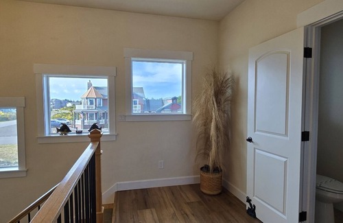 The Beach Gem house has stunning beach front views from every room. It has an open concept living ,dining, and kitchen area , perfect for entertaining. Private path right to the beach with miles of beach combing. This home is right on Agate beach 4 miles south of downtown in Ocean Shores. 2 bedrooms and 1 bathroom are downstairs with 1 queen in one room and a twin bunk bed in the other. Upstairs is kitchen, living room , dining room as well as the Master bedroom with a queen bed and an attached bath with double sinks. This home is for 6 people max. The half bath is located off of the living room upstairs. The kitchen has double ovens, stainless steal appliancesand is very well stocked for preparing meals. There is also a hot tub for your enjoyment.