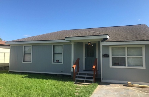 3 bedrooms to accomidate up to 7 people. Renovated house with big backyard for playing and grilling out on deck. Or walk the park on the water down the street for picnic. Galveston is 15 minute drive away. Great local cuisine within minutes. At night play a board game or on the foosball table with your friends or family.