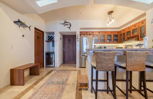 Here you can see incredible sunrises and moonrises right from your balcony. The unit has one bedroom, two full bathrooms, a fully equipped kitchen, a living room, a dining room area, and two balconies. There is Satellite TV in the living room and bedroom, there is a queen-sized sleeper sofa in the living room for extra guests. Villas De Cortez has a very nice restaurant/bar and pool below. The beautiful town of Los Barriles has many authentic Mexican restaurants, a few sushi restaurants, pizza places, and many other types of restaurants. There are many places to go shopping, swimming, snorkeling, bike riding, and hiking. Kite surfing is very popular in the winter, you can go fishing in the morning and go kite surfing in the afternoon. Fishing in the summer is great all day. The resort also has quad rentals, and charter boat rentals.