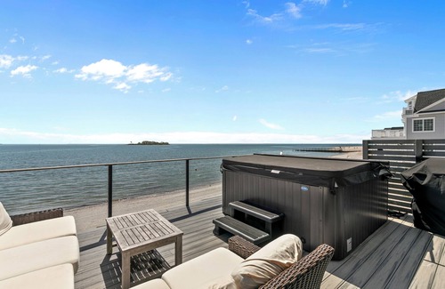 With 38 perfect 10-star ratings on VRBO (and many more on other platforms), this one-of-a-kind coastal home offers a luxury experience. For those seeking to vacation directly on the Long Island Sound. Imagine stepping off your deck onto the sand, with the waves of high tide just 40 feet away from your doorstep. Nestled on Silver Sands Beach, the area boasts soft sand, perfect for long walks during low tide, with minimal rocks, making it a beach lover's paradise. Silver Sand State Park (297 Acres) is 200 yards away and has a 1.2-mile boardwalk that winds around the shoreline for nature walks or a run.