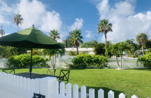 Bean Point Beach. Vacation at Anna Maria Island with the most beautiful white sands beach and crystal clear emerald green waters in the world! Bean Point Beach Cottage is located at the (North End "tip" of the island) quiet and peaceful (no noise and hardly anyone on beaches since parking is restricted mostly to the AMI homes : owners (you have 3 parking spaces at front door of house). Alamanda Rd. Is 1 block over from the beach (short stroll…walking). This newly updated bean point beach cottage has valuted ceilings with fans. 1 full bedroom offers a brand new comfy (Electric adjustable sit-up) King bed with Large TV and ceiling fans. Livingroom offers open floor plan to Kitchen plus 1 brand new very comfortable XL long twin mattresses daybed for tall adult (or children). Interior Living Room Dining table - seats 4. Kitchen Island - seats 2. Exterior table just off living room back door offers umbrella 6 seating area. Sit, Outdoor shower for…beach days. Full sized washer / dryer inside building. Large 55” Living Room TV / Free Internet sit at 2 comfortable cushioned chairs with a large automan. A couple of beach chairs are available outside. Room for golf cart parking directly at front door (if you rent one). This property is managed by its Florida local owner and very well taken care of personally by owner. You have your own; A/C unit (covid safe), Front and Back Door ground level entrances. 1 level house (great for elderly). Come stay safe and social distanced! Relax at quiet Anna Maria Island while staying safe! ....fun Bean Point Beach / Anna Maria Island. Walk, bike or kayak at the quaint Anna Maria Pine street shopping village (5 bike ride or short 15 minutes walk away). Or go off island for day trips to visit the nearby brand new Mote Marine (to see live sea turtles : fish : manatee: penguins), Cortez on the beach weekly tent flea market, and Sarasota’s st Armand’s key shopping circle. (Local list of events & “rental” companies activities will provided). Visit us at Anna Maria Island… and you’ll want to come back every year!