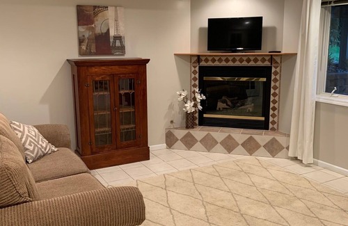 Enjoy the privacy of this fully furnished one bedroom in-law suite. This first floor suite of our home in comfortably spacious with a private entrance, bedroom, living room, kitchenette and bath. The porch with a view of the private pond is a great place to enjoy a fresh morning coffee or the evening breeze