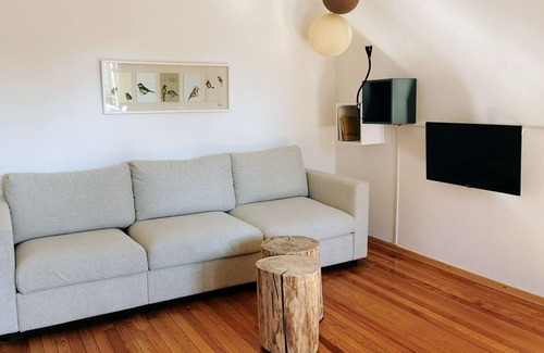 The kitchen is equipped with an oven, a stovetop, and a refrigerator, as well as a coffee maker, an electric kettle, and cookware. Bathroom amenities include a hair dryer, towels, and toilet paper. And you can even travel light because you'll have a washing machine. Other amenities include bed sheets, heating, and a dining table.