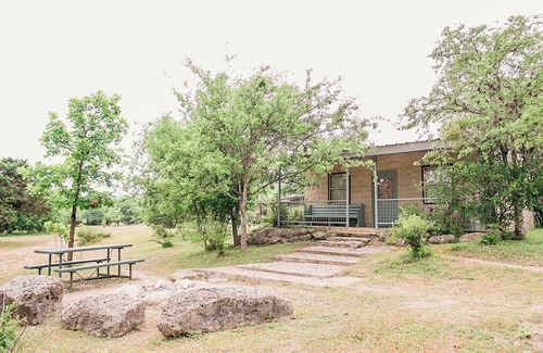 Original Cabin #6 sits by century old pecan trees that provide a shady area to barbecue, enjoy a campfire, play volleyball, pitch horseshoes or just relax and observe wildlife. The tapered riverbank makes this location great for young kids. There are shallow river areas, perfect for smaller children, and deep swimming holes for fishing and swimming. Set your camp chair seat-deep in the Frio while enjoying your favorite beverage and hanging out with your crew or grab your tube and float down to our River Terrace property (about 45 min float from this location) and hang out in the deep swimming hole. Take a walk on our primitive nature trails where abundant wildlife can be seen. There are 6 cabins at this location, all perfectly spaced apart, so that each cabin has its own private outdoor area and are just a 3-4 minute walk to the waterfront.