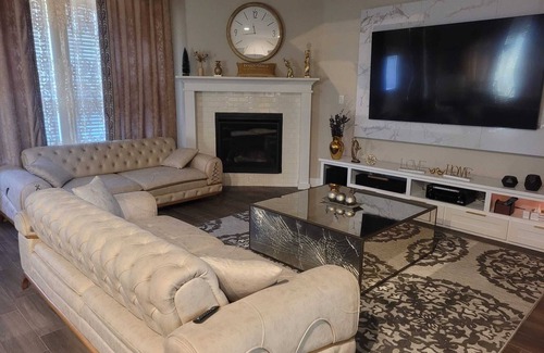 Kick back & relax in this luxurious 2 story house with nice & modern amenities. The 3 bedroom and 2 full baths are upstairs and the powder room downstairs. Room features includes: Smart TV, mini-fridge, microwave & a comfortable queen-sized bed allowing for a good night sleep. The Two full bath has a shower & bathtub combo perfect for unwinding after a long day. Dolby surround system media room with a smart TV (Netflix, Amazon Prime, Sling, Peacock) to watch your favorite shows and a play station 5. There is also Fitness equipment (Treadmill, Pull-Up Bar, Stationary Bike) in the garage if you want to exercise during your stay. EV Charger also available. You'll find this beautiful house perfect with a feeling of home away from your home