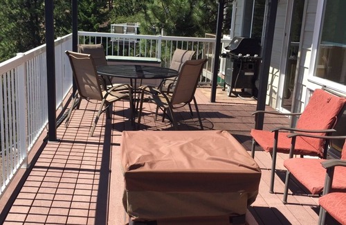 This 2-story lake home has a fun cabin feel, with plenty of living space for gathering and play. There are 180 degree views from living rooms on each floor, air conditioning, and 4 private bedrooms. Additionally, the downstairs living room offers a day bed with trundle, plus a futon for extra sleeping space.