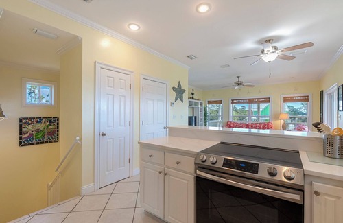 First Level King suite with Jacuzzi tub and balcony, Bunk + queen room with private bath and deck access Second Level: Full kitchen, dining, living area with sleeper sofa, Gulf-view balcony Queen bedroom with private bath, full hall bath, washer/dryer Note: We do not rent to groups of guests under 25 years. Adults under 25 years of age must be accompanied by a parent. Dog-friendly: Max 2 dogs, $200 per dog non-refundable fee.