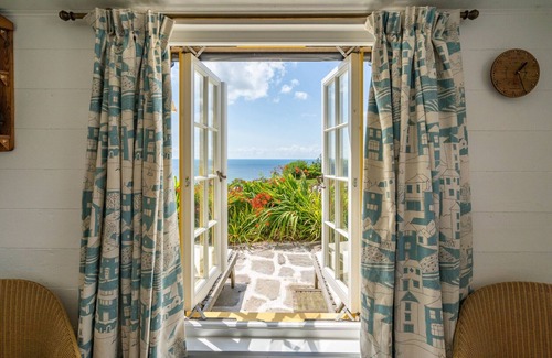 Lovingly restored with evident attention to detail, this colourful coastal home in Whitsand Bay, part of Cornwall's 'Forgotten Corner', is pet-friendly and in an idyllic location with magnificent sea views. Charmingly furnished and full of character, it offers a peaceful oasis for two, with miles of golden sands on the doorstep. The chalet is the ultimate in fuss-free self-catering being a mere minutes walk to the Cliff Top Cafe with its friendly staff, delicious food and stunning views. You will be spoiled for choice! Bel-Nor-Cot is also walking distance to the Fort Inn, renowned for its Sunday roasts, The View restaurant which specialises in tapas, charcuterie boards and wine, as well as a plethora of excellent pubs and restaurants in all the surrounding villages. The chalet is moments from the SW Coast Path, enjoy scenic clifftop walks to the dramatic Rame peninsula and medieval chapel, home to the rare Dartford Warbler, and picturesque Kingsand-Cawsand, the shoot location for Mike Leigh's award winning film of Turner. Inland, two beautiful gardens, both within 5 miles, offer a change of terrain: Mount Edgcumbe House is set in an ancient country park with formal gardens, woodlands and wild deer, a fort, temple, several follies and an Orangery tearoom with lovely views across the River Tamar, while the National Trust’s Antony House has a historic plant collection, playful topiary and intriguing sculptures. The chalet sits within a gorgeous flower-rich garden. This couple’s quirky escape has a striking façade and high-end interiors that simply ooze character and charm. Pause to admire the breath-taking bay views before you step inside; the entrance hall has room for coats, boots and beach gear. Beyond, the open-plan living space is flooded with light thanks to fully-glazed double doors onto the garden. Painted furniture, a wood burner, stained-glass windows and coastal-themed artworks create a warm and welcoming ambiance, and there’s an effortless flow between the kitchen, dining and lounge areas. When it’s time to retire, a door leads directly into a blissful king-size bedroom, with its luxury handmade Vispring mattress for a perfect night's sleep, and plenty of clothes storage space. Another door from the living room leads into an elegant bathroom with feature tiling, a free-standing bath and separate rain shower. The gardens here are an enchanting extension to your living space, with beautiful planted borders plus a lawn, patio, gas BBQ, outdoor dining area, hot & cold outdoor shower and a dog shower. Lay back on the two loungers on the secluded sundeck and soak up the sunshine, enjoy bubbles beneath the stars as you spend evenings in the hot tub – robes are supplied – or follow stepping stones across the lawn to a separate garden room where you can unwind with a book or nab an afternoon nap while gazing out to the Eddystone Lighthouse