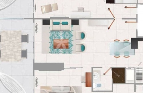 Discover an exquisite retreat perfect for families and groups of friends seeking to craft unforgettable moments together. This spacious Two Bedroom Suite spanning 1,980 square feet offers accommodation for up to six guests in unparalleled style and comfort. Upon entering, you'll be greeted by a remarkable gourmet kitchen featuring top-of-the-line appliances, complemented by a dining area seating four, and a tastefully furnished living room equipped with an entertainment center and a sleek 55-inch flat screen TV. Sink into relaxation on the sofa bed or lounge chairs adorned with the elegant geometry of coral. Adjacent to the kitchen, a full bathroom and a laundry room with washer and dryer add to your convenience.