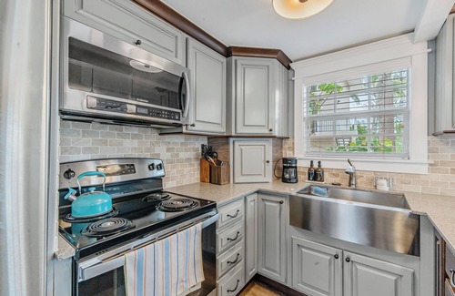 With tropical style coastal furnishings, this home has it all, located within a short walking distance to many shops and restaurants. It is also very close to one of the free trolley stops. The bedroom includes a king bed, large flat screen TV and DVD player. The living room has a couch, love seat and a large flat screen TV with DVD player. Bathroom includes granite counter tops and a walk-in tiled shower. Bring your mobile devices as this home is equipped with Wi-Fi throughout.