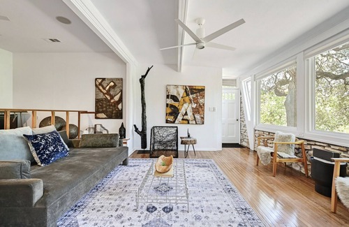 Nest and take flight out of this comforting retreat in Downtown Austin. Located in the heart of Zilker, this is the perfect home to enjoy all the attractions of our unique city. Literal steps away from Zilker Park, Barton Springs Pool, Umlauf Sculpture Garden and all the shine of Barton Springs Boulevard. This artful and inspiring ranch-style home features 3 bedrooms + 2.5 bathrooms sleeping 6 guests with ease. Combining original stonework in the living room with a modern kitchen, bathrooms and primary suite nestled amongst large oak trees, this sanctuary is well-suited to any enlightened traveler. We invite you to share in good company, and stay awhile with Renters Club.