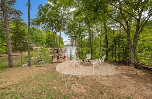 Come enjoy the "Best of Both Worlds" with a protected cove to main lake views! This lovely lakeside home offers 5 bedrooms and 3 full bathrooms. It has a screen porch to enjoy your morning coffee or an evening drink overlooking the water. A gourmet kitchen to prepare delicious meals and a family room downstairs with a wet bar, fireplace, darts, and ping pong for your entertaining fun. Outside there is a covered patio, a lakeside fire pit, and a great boat house for swimming (9ft). There is a bunk room on the 3rd floor for the kiddos to enjoy! There are day passes available at a community pool! Two Kayaks and Pedal Boat to use and enjoy the lake. Enjoy the new fiber optic wifi that was just rencently installed. What are you waiting on? Book with us now!
