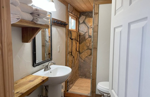 Saloon contains one king bed, a private bar (BYOB) with mini fridge and microwave, 2 gas log fireplaces, flat screen HD TV (Dish Network), a private bath, WIFI access, air conditioning.