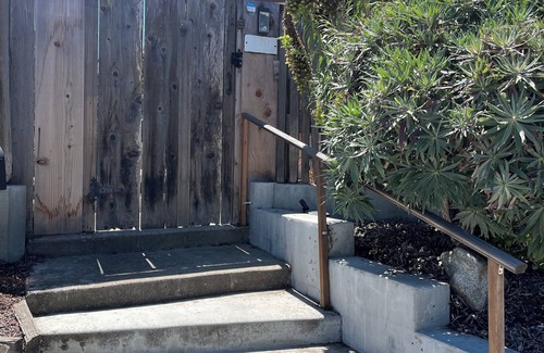 Our home is a split level with 2 bedrooms and 2 bathrooms. 2 smart TVs with cable. Enjoy a BBQ and turn on the firepit in the sandbox backyard. There's adironrack seating for 4 at the firepit and another two nearby. Also there's a tall table in the front balcony to enjoy the peek-a-boo ocean view. Beach chairs and gear are available for use. Street parking is recommended and almost always available right in front of the house.