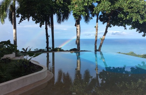 The location is a perfect getaway for a group of 4-10 guests. It has 5 bedrooms and 6 bathrooms in the main house with an ocean view, and the option to rent an on-site apartment for extra cost to accommodate groups of up to 14 guests. All bedrooms and bathrooms inside the main house have a balcony with a spectacular ocean view. An additional bedroom, bathroom, and loft are available in the guest house that sleeps 6 (no ocean views). We have a large Infinity swimming pool surrounded by an open patio that is perfect for small intimate weddings and other social events. There is an outdoor patio and seating area with a BBQ grill. There are additional outdoor areas with lots of seating. It is hard to describe how amazingly beautiful this view is! Once you are at the Vista Real pool relaxing in the shade of the palm trees, you will know you made the right choice for your vacation. It is simply breathtaking!