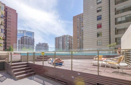 Amazing apartment located in Las Condes Santiago. Stylish decoration with 1 bedroom apartment 1 bathroom kitchen well equipped, . Perfect location, right next to shopping mall "Parque Arauco", easy to connect by subway (closest station Escuela Militar) or bus anywhere. Outstanding balcony with panoramic view of "Cordillera de los Andes".Building with pool and gym.