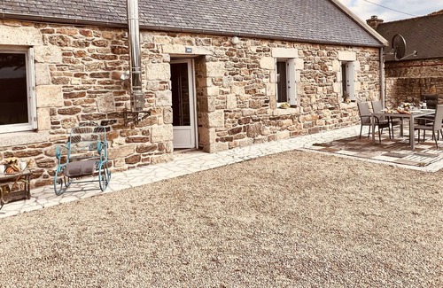 Would you like to spend your holidays in a typical Breton stone house? The Longère "Kervagen" couldn't be more typical. It is a small granite farmhouse in the middle of fields and surrounded by farms. So very quiet and rural location. But the sea is not far - only approx. 10 km and you have a turquoise sea and kilometers of beautiful sandy beaches around you in the beautiful Breton sun - certainly the most beautiful of North Finistère and this only 15 minutes away. The house has two large bedrooms with double beds - ideal for 2 to 4 people, happy to be accompanied by your dogs (unfortunately we cannot accommodate cats) - the house is simple; but clean, has a separate toilet and a small bathroom with shower (with design and 80's charm). The living room has a large sofa for chilling, a dining table in front of the wood-burning stove, and a small kitchenette with everything you need, even a dishwasher, washer-dryer, fridge and stove - the oven is small - but everything else is there. Make yourself a nice fire in the fireplace, enjoy free international satellite TV and also free internet via WLAN. Please always register your pets; Dogs are very welcome if you are registered. We cannot accommodate cats !!) On arrival and departure you can choose the day you like; we have no fixed arrival days - choose to your heart's content, every stay is welcome as long as you stay with us for at least 7 days. It is very important that in KERVAGEN there is no laundry ready in the house - we do not offer any options either - so please remember: bring all bed linen, towels and tea towels with you - also think of bath towels because the sea is just around the corner. The house has a small garden area, but a large gravel parking lot, which even offers space for several cars: There is a beautiful terrace in front of the house with garden furniture - the property is not fenced, but open to the dirt road. For your walks you are already one meter away in a quiet, green, relaxing feel-good landscape. It is very important for us to assure you that all parts of the house are purely private and can be used alone. The Longère has a sister house next door that may also be rented out - both houses are 100% separate from each other, there is nothing that is shared. So you are completely private. The place Kervagen is really very rural - you can count on a farm holiday feeling. Have a nice holiday in Kervagen.