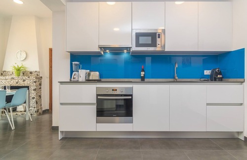 The interior of the house is perfect for relaxing with your family and friends. The spacious living and dining room is equipped with AC and Smart TV. In addition, there is a table for 6 people. The kitchen, which is independent and has a ceramic hob and AC, has everything you need to prepare any dish. In the laundry room, you will find a washing machine, an iron and an ironing board. In the house, there are also three double bedrooms (one of them with AC) and two bathrooms, one with a shower and the other with a bathtub. If you are traveling with your baby, we can provide you with a cot and a highchair.