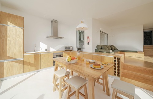 Inside, the decoration combines with the modern architectural features that stand out through simplicity and good taste. The house has two bedrooms with double bed; bathroom; and a fully equipped kitchen. The maximum capacity is 4 guests