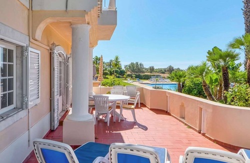 This beautifully decorated townhouse is located on a small condominium with a landscaped garden, from which you can walk to directly from the terrace. Where you can enjoy the sun and children can play safely. There is a large swimming pool and a separate children’s pool with an outside shower. Casa Marinha 1 is walking distance from the beach, Praia da Marinha, which is one of the most beautiful beaches of the Algarve.It has quite a number of steps down to the beach, surrounded by rock formations. There is a BBQ area in the car park overlooking the sea, and beautiful cliff walks. Praia da Marinha has been voted the top 20 most beautiful beaches in the world by Tripadvisor.Accommodation: 4 + 1 persons, 2 bedrooms, 2 bathroomsLiving roomThe living room is furnished with stylish and comfortable furniture. The doors lead to a big terrace with the pool nearby. The dining area is connected to the living room and offers seats for 6 people. The living room is equipped with air conditioning.First FloorThe master bedroom has a double bed (1.60 x 2.00m) and air conditioning. The bedroom doors open to a balcony with views of the garden, pool and out to sea. There is also a side terrace with seating to enjoy the views. There is an ensuite bathroom with bath (Jacuzzi is not useable) and shower, toilet, double sink and bidet. There is also plenty of room to put a Z Bed and Cot.Ground Floor The second bedroom has a kingsize bed(1.80 x 2.00m), air conditioning. There is a separate large bathroom, with shower, double sinks, toilet and bidet. There is plenty of wardrobe space in both bedrooms.KitchenThe open plan kitchen is fully equipped with an electric cooker, microwave, dishwasher, fridge/freezer and washing machine.ExteriorFrom the patio, you can enjoy a BBQ while looking at the views of the garden and pool. This location is ideal for families with children as the patio is fully enclosed. Behind the apartment, there is ample parking space. A restaurant can also be found on the beach during the summer months.Casa Marinha 1 is walking distance from the beach, Praia da Marinha, which is one of the most beautiful beaches of the Algarve. It has quite a number of steps down to the beach, surrounded by rock formations. There is a BBQ area in the car park overlooking the sea, and beautiful cliff walks. Praia da Marinha has been voted the top 20 most beautiful beaches in the world by Tripadvisor. The house is equipped with one cot and one high chair. We can arrange a second cot and/or high chair for 20 Euros per item per stay. If you have a late arrival, it is possible to order some basic groceries. These will then be available in your home. The products are at cost price + a fee for delivery. Ask us for more information.Amenities:Communal poolBarbecueFiber internetDVD player and StereoTelevision with International TV channelsAir conditioning throughoutWashing machineDishwasherMicrowaveOvenDistances:Beach Praia da Marinha: 350 mSupermarkets: 3 kmShops: 3 kmWater park Slide and Splash: 6 kmCarvoeiro: 9 kmVale do Milho Golf: 4.5 kmFaro Airport: 58 kmIncluded in the rental price:Towels and linenCot and highchairUse of gas, water and electricityWe are located in Carvoeiro, so always near when you need help :-)