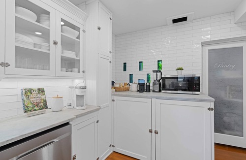 The Chef's kitchen is well-appointed, catering to both professional and home chefs. Coffee enthusiasts will appreciate the selection of coffee makers, including Nespresso, Keurig, Mr. Coffee, or a classic French Press with local Pump House coffee. Tea lovers are also taken care of, with a variety of teas and a Chantal Oslo Electric Kettle. If desired, local home chef services can be arranged to elevate your culinary experience.