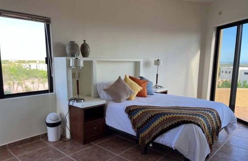 This property hosts four rentals, 2 quaint little studios, that sleep up-to four people, 2 - 2 bedroom suites that can sleep six people. Over looking the Bay of La Paz with stunning, sunrises and sunsets. You will thoroughly emerge yourself in this beauty of the landscape. The common areas have a 55' solar heated pool, 3 Pickle-ball courts, basketball, barbeque area, Palapa bar, a Palapa area for relaxing and hot tub. Bring the whole family to this great place with lots of room for fun.