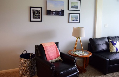 Our home has 2 bedrooms (one with a queen bed and the other with a king and single bed) and 1 and 1/2 bathrooms. There is a comfortable sleeper sofa in the living room. We have a fully-stocked kitchen with all of the equipment you could need to make delicious meals. There is a washer and dryer as well as a dishwasher. We also provide linens.