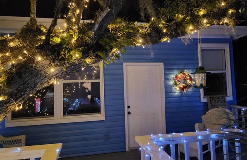 CLOSE TO THE BEACH Your own little piece of Coastal Heaven. Cozy Cottage with a King size bed, Luxury leather Sectional Sofa, Smart TV, 1 Full Size bathroom with Shower, Kitchenette with sink, fridge, and microwave. All in a tropic setting, close to water front and back, 2 minutes to the beach by car( or 5 by golf cart), marina, fishing, restaurants, shops. Wild life abounds, peace and beauty. Golf-cart friendly! Upto 2 small dogs stay free.