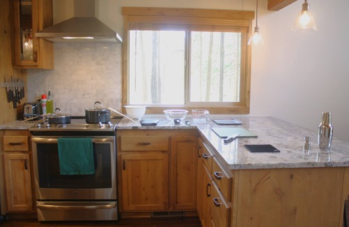 This charming two-bedroom retreat blends vintage national park style with updated comforts, featuring wood beam ceilings, a fully renovated kitchen and bathroom, and a touch of playful personality thanks to our friendly resident mascot, Squatch.