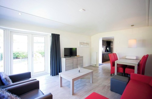 The Exclusif 4 is a sleek, modern home yet charming. The interior gives a wonderful feeling of home away from home. This holiday home is on the ground floor and suitable for 4 persons. In the living room you will find a cosy sitting area with a television and French doors to the outside. The modern kitchen is well equipped with a fridge-freezer, dishwasher, microwave and a Nespresso Professional Machine (capsules for this machine are sold exclusively at the reception/mini-market). The Exclusif 4 has 2 bedrooms with 2 single beds. The bathroom has a shower and toilet. The terrace has garden furniture. You can park 1 car at this house and there is free WiFi.