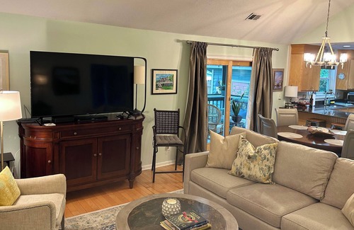 Come and relax in our cozy cottage with all the comforts of home. We are located in the gorgeous Old Village of Mt. Pleasant- historic homes, huge oak trees and marshes. The back porch/patio with fire pit and grills is a favorite spot. The cottage is Just 5 to 7 minutes to the beach of Sullivans Island, the Isle of Palms, waterfront Shem Creek, and just 10 minutes to downtown Charleston. Walk, Bike or take the golf cart through the lovely streets to Alhambra Halls harbor view park, to the Pitt St bridge/pier for an amazing sunset, and then conveniently cart to dinner at Nicos, Post House, Arts, The Shelter, or on Shem Creek to The Wreck, Saltwater Cowboys, Reds, Tavern and Table, The Crab House, or The Mill Street Tavern.