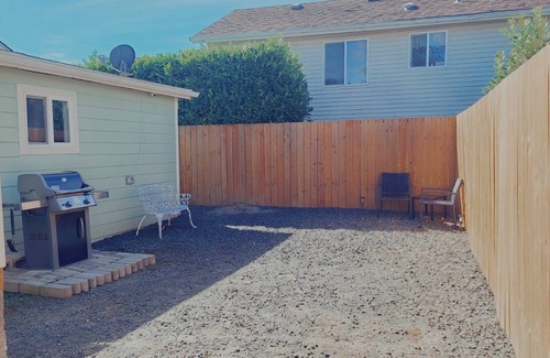 Escape to this adorable house in picturesque North Bend. This welcoming property features 2 cozy bedrooms - one with a king bed and the other with a queen bed. The living room offers an additional sleeping space with a comfy futon. Enjoy the convenience of WiFi, AC, and a washing machine during your stay. Make your holiday one for the books with a stay at our place. Pets are welcome with extra cleaning fee. Large fenced yard for your pet to run around (please pick-up after pet). Large yard to accommodate RV, small boats, etc. Backyard oasis with BBQ and small sitting area. New appliances.