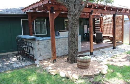 Welcome to your luxury Austin retreat, just 15 minutes from downtown in a peaceful neighborhood! Enjoy this newly renovated home equipped with a fireplace, two TVs, a small wine cooler, board games for entertainment and more. The spacious kitchen includes all cooking essentials, opening up to a large backyard with a firepit, grill and dining area. Unwind in the cozy bedrooms and bathrooms with modern fixtures. This chic home is an ideal base for exploring Austin’s best attractions!