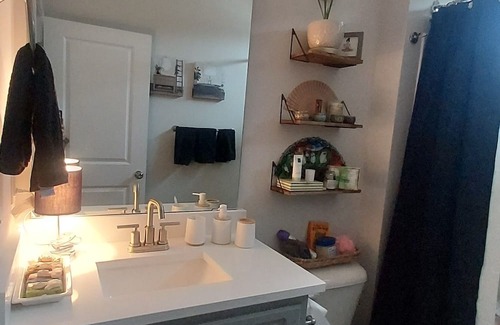 My home features 1 bedroom with a cozy queen bed for up to 2 guests, a clean bathroom with bathtub, shower and a bidet. My guests have all the essentials like AC, WiFi, TV with all streaming apps in your room, washing machine, dryer access, a workout room and office if needed. My fantastic property will make guests feel right at home during their stay in Wilson.