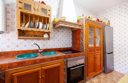 The charming holiday home is well-designed for ventilation and consists of a living room with a rustic, stone fireplace, a very well-equipped kitchen, 2 bedrooms (one with 2 bunk beds) as well as one bathroom and can therefore accommodate 6 people. Additional amenities include Wi-Fi, fans, television and a baby cot. In the spacious outdoor area, enjoy walks through the greenery of the garden, prepare delicious meals on the barbecue and share these on the furnished terraces of the property. On warm afternoons, refresh yourself in the small pool under the clear blue sky. Thanks to its location close to the highway, you can quickly reach the city centre of Chiclana de la Frontera in 5 minutes driving as well as the beautiful, sandy beaches, like Playa de la Barrosa, in 11 minutes by car. Furthermore, a variety of golf clubs are close to the property, making it ideal for a variety of a variety of activities and interests.