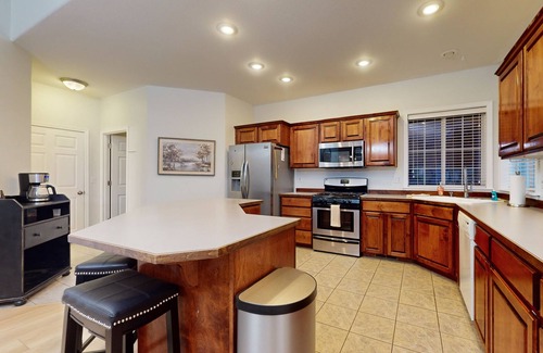 This house is equipped with everything you need for a comfortable stay, from a well-appointed kitchen with modern appliances to a cozy living room with a gas fireplace. Enjoy the convenience of a washer/dryer, central AC, and streaming apps. The enclosed yard provides a safe space for kids to play, while the patio with a gas grill is perfect for alfresco dining.