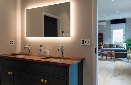 Our suite is part of a multi unit building. Three suites are located on the second floor and are all available for reservations. All guests have access to enjoy our 1st floor bar and lounge area. The bar and lounge area has a large round dinner table, 8 barstools located at the bar island and a lounge area with a smart tv.