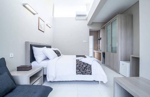 The studio is located in the third floor of Bali True Living Apartment. This suite is exclusively designed with elegant style furniture and up-to-date appliances. The bedroom has very high celling, large space (33 meter²), in-room private kitchen & bathroom, and private garden balcony with a 180 degrees city view.