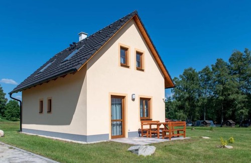Child friendly holiday development "Slunečná Louka", built in 2023, surrounded by meadows. 3 houses in the resort. On the outskirts, in a quiet position, 100 m from the river, in the countryside. Private: property 500 m2. Terrace, garden furniture, barbecue. In the complex: storage room for bicycles. Parking at the house. Grocery 2 km, shopping centre 13 km, restaurant 2 km, bus stop "Stráž nad Nežárkou" 2 km, railway station "Jindřichův Hradec" 13 km, public bathing area 2 km. Nearby attractions: Zámek Stráž nad Nežárkou 2 km, Pískovna Stráž nad Nežárkou 2 km, Zámek, Aquapark Jindřichův Hradec 13 km, Zoopark Na Hrádečku 13 km, Zámek, Lázně Třeboň 16 km.