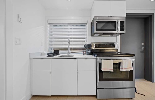 Welcome to our cozy one-bedroom loft with a fully equipped kitchen! Nestled in a tranquil residential neighborhood, our space offers a peaceful retreat for your stay. Our well-lit laneway house provides a warm and inviting atmosphere, ensuring you feel right at home. Look no further for the perfect accommodation - we can't wait to welcome you and make your stay unforgettable!