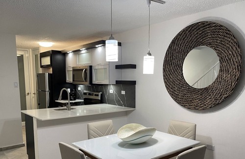 Two bedrooms villa with amazing amenities. Fully air condition. With outside terrace. Sleep seven. Walking distance to marina, bars, restaurants, tours and groceries. In Gated Community.
