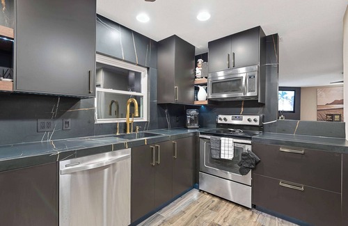 - Modern Kitchen with Breakfast Nook: Prepare delicious meals in the fully equipped, modern kitchen, complete with a charming breakfast nook that overlooks the oasis-like backyard, offering a serene start to your day.