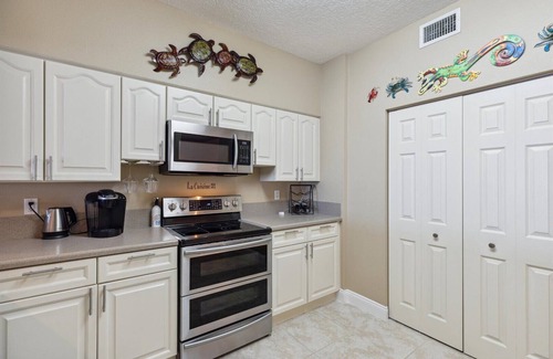 Our condo features three thoughtfully designed bedrooms. The master has a king bed, while one guest bedroom has a queen, and the other has a double & twin bed. For those who love to cook, our kitchen is a chef's delight. It comes fully equipped with modern appliances and utensils, allowing you to prepare delicious meals while enjoying the ocean sounds. Unwind in the stylish living room with a large smart TV and comfortable seating. Whether you're catching up on your favorite shows or simply enjoying the company of loved ones, this space is designed for relaxation.