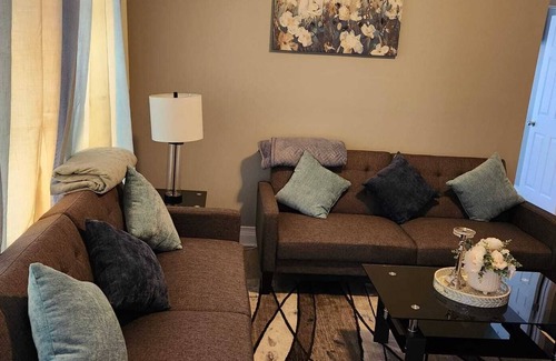 Bridgeport is waiting for you at this superb 4-bedroom corporate apartment. With 2 queen beds, 1 full bed, and 1 twin bed, this peaceful retreat offers a cozy living room with 2 futons for extra relaxation. Enjoy the convenience of AC, a hair dryer, washing machine, WiFi, heating, and an iron during your stay.