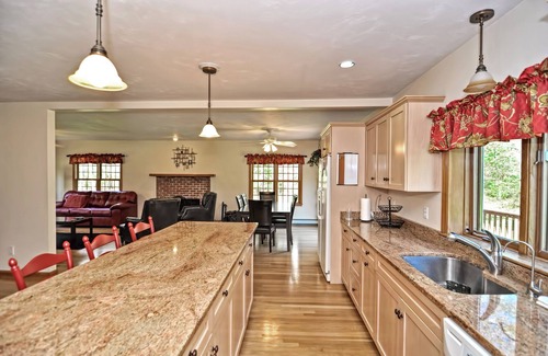 Colbyco Little Sandy Pond features a well appointed kitchen, which can comfortably serve a large group. It is equipped with the latest appliances, custom cabinets, granite counters, and a spacious island.