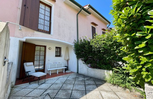 Two-storey terraced house located in a quiet residence with a shared garden and swimming pool. It can comfortably accommodate up to six guests. The ground floor consists of a spacious living room, a fully equipped kitchen, a dining room, a lovely patio, and a service bathroom. The first floor is composed of two double bedrooms, a bedroom with two single beds, and a complete bathroom with shower (curtains). One uncovered parking space is included. Beach distance 550mt. A/C is available at an additional cost (check below).*No pets allowed.°Swimming pools are open seasonally (mid June/early September): exact dates may vary due to weather or maintenance